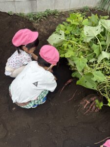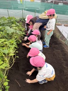 どうやって掘るのか…最初は尻込みしていたお友だちも、徐々に積極的に掘り始めました。