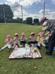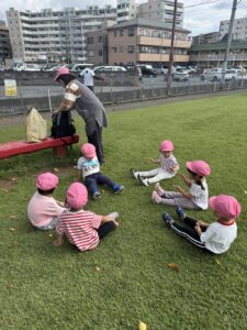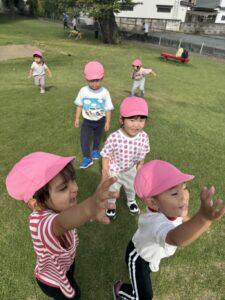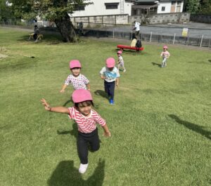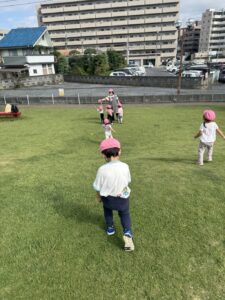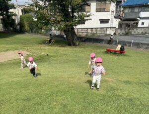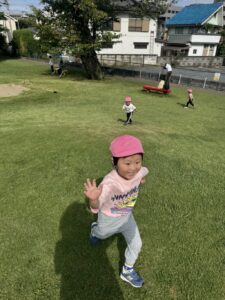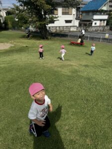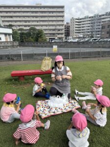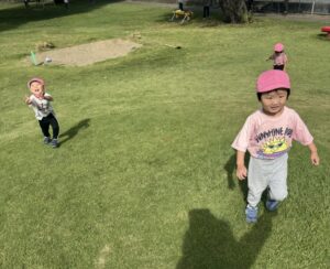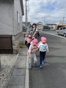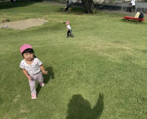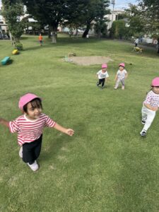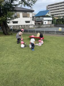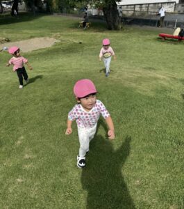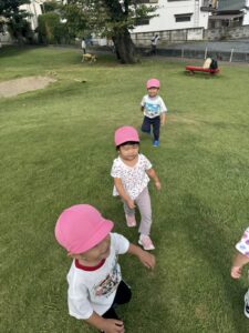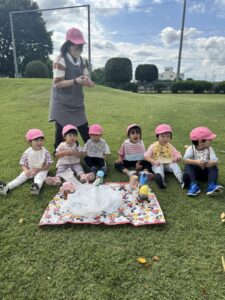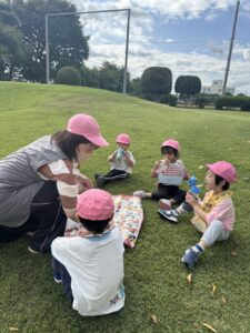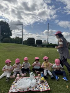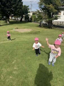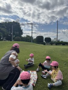 今朝、早い段階では天気予報で9時頃から雨が降り始める予報でしたので、延期にしようかとも思いましたが、8時30分には雨の予報が消えたので、ミニ遠足の準備を進めて、運動公園へ向けて9時10分に出発しました。