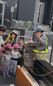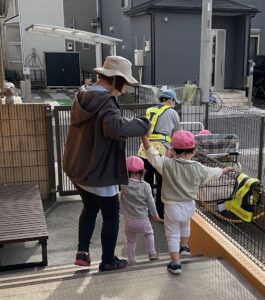 一周して戻ってくると、お友だちの名前を呼んで、声を掛け合い、ハイタッチしたりして、仲の良いそら組さんです。