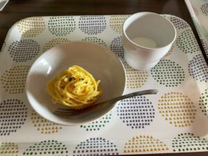 本日のおやつは栄養士さんが、畑のさつま芋を用いて、「モンブランケーキ」でした。