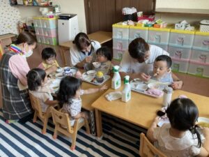 給食の前にあくびしている園児さんが見受けられます。