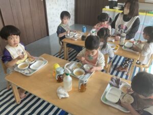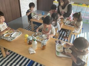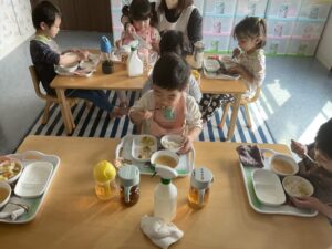 お野菜を先にいただき、お魚を喜んでパクパク食べていました。