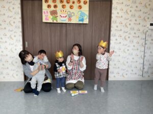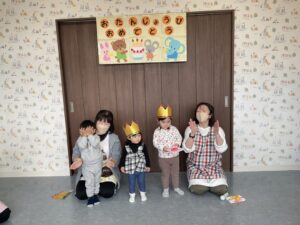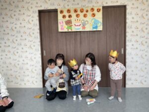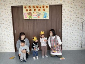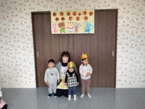 今日は、先日3歳になったお友だちと、もうすぐ2歳になるお友だちと、先月2歳になったお友だち、3名のお友だちのお誕生日会をしました。
